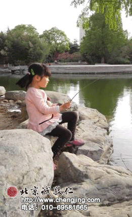 路路在读诵《声律启蒙》的时候,拿出当司仪班长的劲头,字正腔圆,音色浑厚,精美的语句用孩子稚嫩的声音读出来,简直是一种享受,仿佛置身于所描绘的景物之中。虽然目前以读诵为主,不要求孩子了解经典文章的意思,但是通过慢慢的熏习,读书万遍,其义自见。有一次放学后,天色还早,带路路去小公园玩耍。她捡起地上的柳条,坐在湖边石头上佯装垂钓,嘴里振振有词,我细细聆听才明白是《声律启蒙》里的一句话:春水才深,青草岸边渔父去;夕阳半落,绿莎原上牧童归。人、景、诗、意立刻勾勒出一幅和美、恬静的画面。《声律启蒙》里有那么多句子,她为什么单单在此时此景选择这样一句来有感而发呢?我想这就是经典本身的魅力所在,感染打动着每个人,无论是大人还是小孩。
