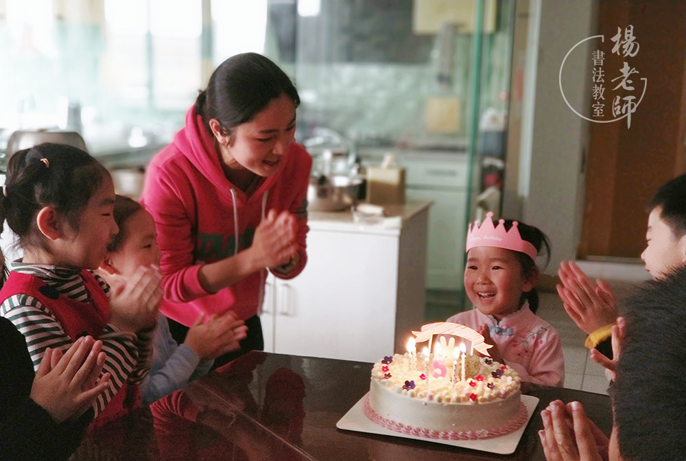 一凡在「杨老师书法教室」与老师和同学 度过了自己的五岁生日