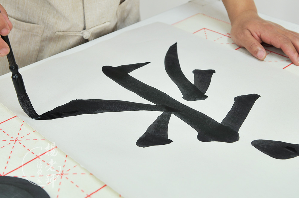 杨老师在总结永字八法大字基本功时,每个笔画都要练习上万次,观察分析每一个书写步骤,运笔方向、转笔顿笔的位置。将每一种笔画分解的极清楚,好学好练,只要认真尝试,每个人都可以写出很有功夫的书法。