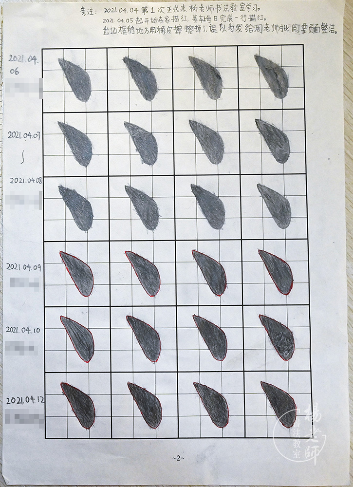 ▲ 2021.04.05日起开始在家描红,基本上每日完成一行描红。