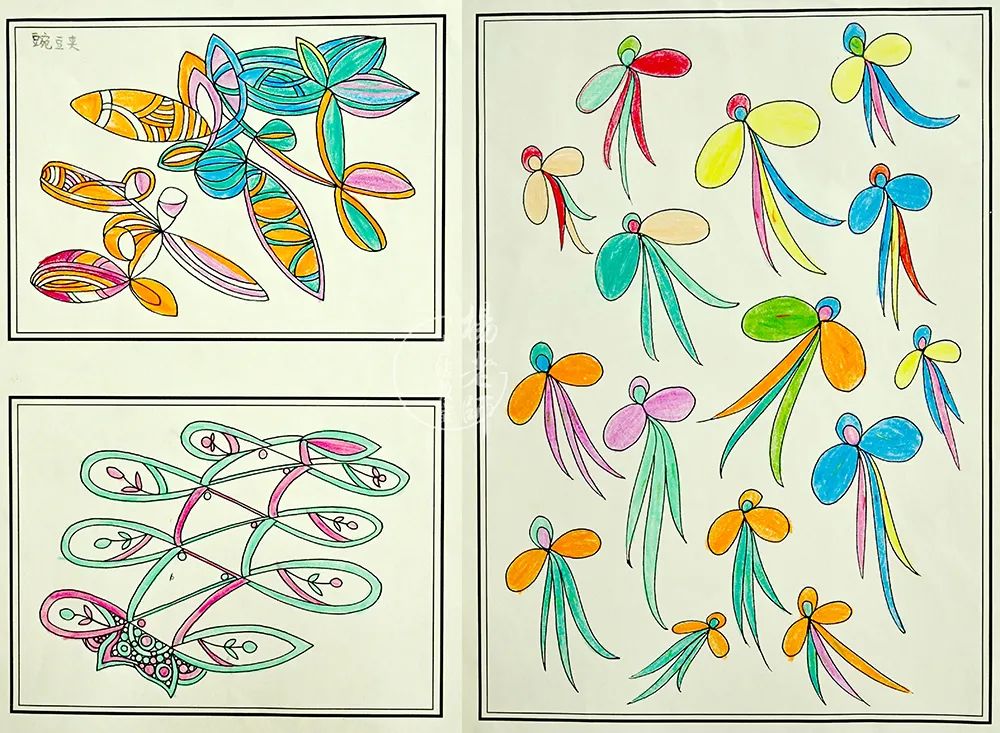 对于学前儿童,锻炼的是在图案基础上,单纯着重练习线条的排列和简单配色。扎实坐姿、握笔姿势、控笔能力等基本功训练。即使色彩简单平铺,更有其质朴自然、纯真烂漫之美!