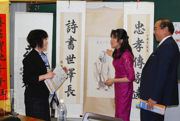 公益财团的理事长,副理事长,局长3位都来到了学生的展览室。当他们听完学生养生书法和彩绘对人健康和人心的积极作用,孔夫子的教诲对现代社会和人的必要性(当然谈得很浅显)以后,非常的欢喜,对这些内容赞叹不已,重复了好几次“太好了,太好了”。虽然日本人礼节性的赞叹很多,但学生还是能感觉到他们真的很高兴。